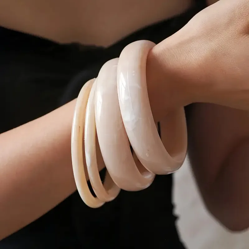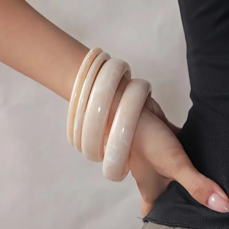 Of je nu naar je werk gaat of een feestelijke outfit samenstelt, deze armbanden set past perfect bij elke look. De gemêleerde crème kleur voegt een subtiele elegantie toe aan je pols, zonder te overheersen. Combineer ze met andere sieraden of draag ze alleen voor een minimalistische uitstraling.