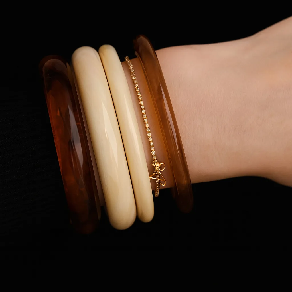 Of je nu naar een chique evenement gaat of gewoon een casual dagje uit plant, deze bangle set past bij elke gelegenheid. De combinatie van bruin en crème tinten zorgt ervoor dat de set gemakkelijk te combineren is met verschillende outfits. Voeg een vleugje elegantie toe aan je dagelijkse look of maak een statement tijdens speciale gelegenheden.