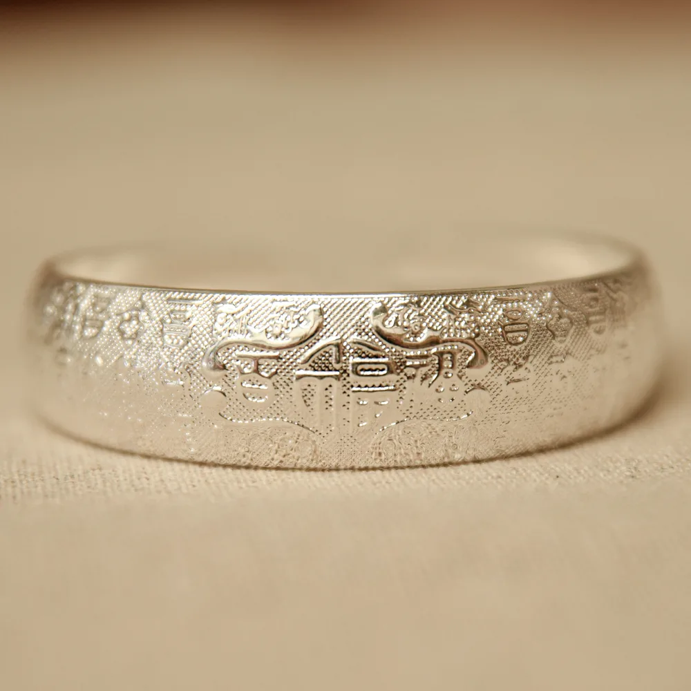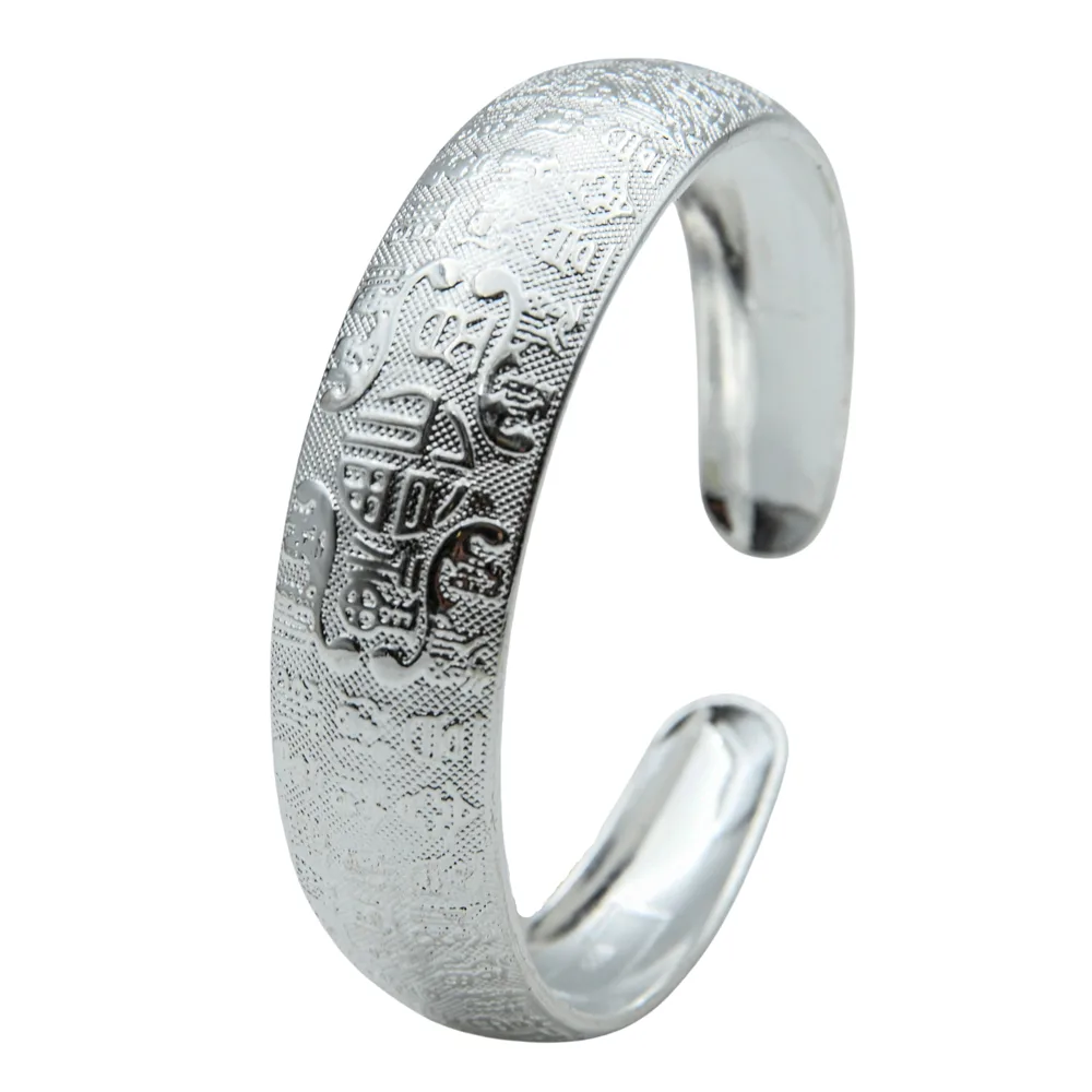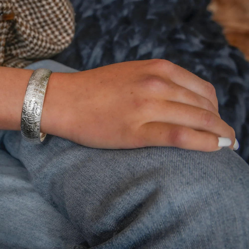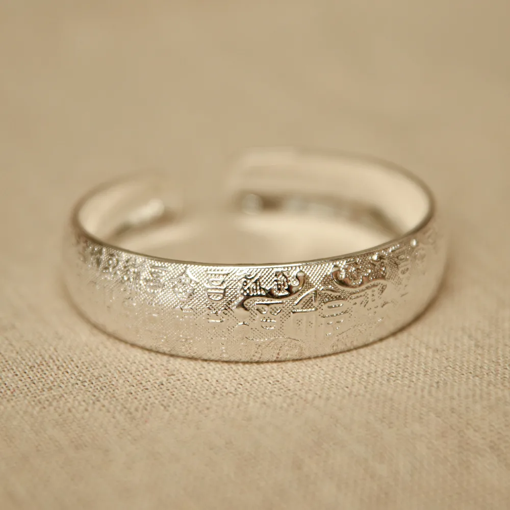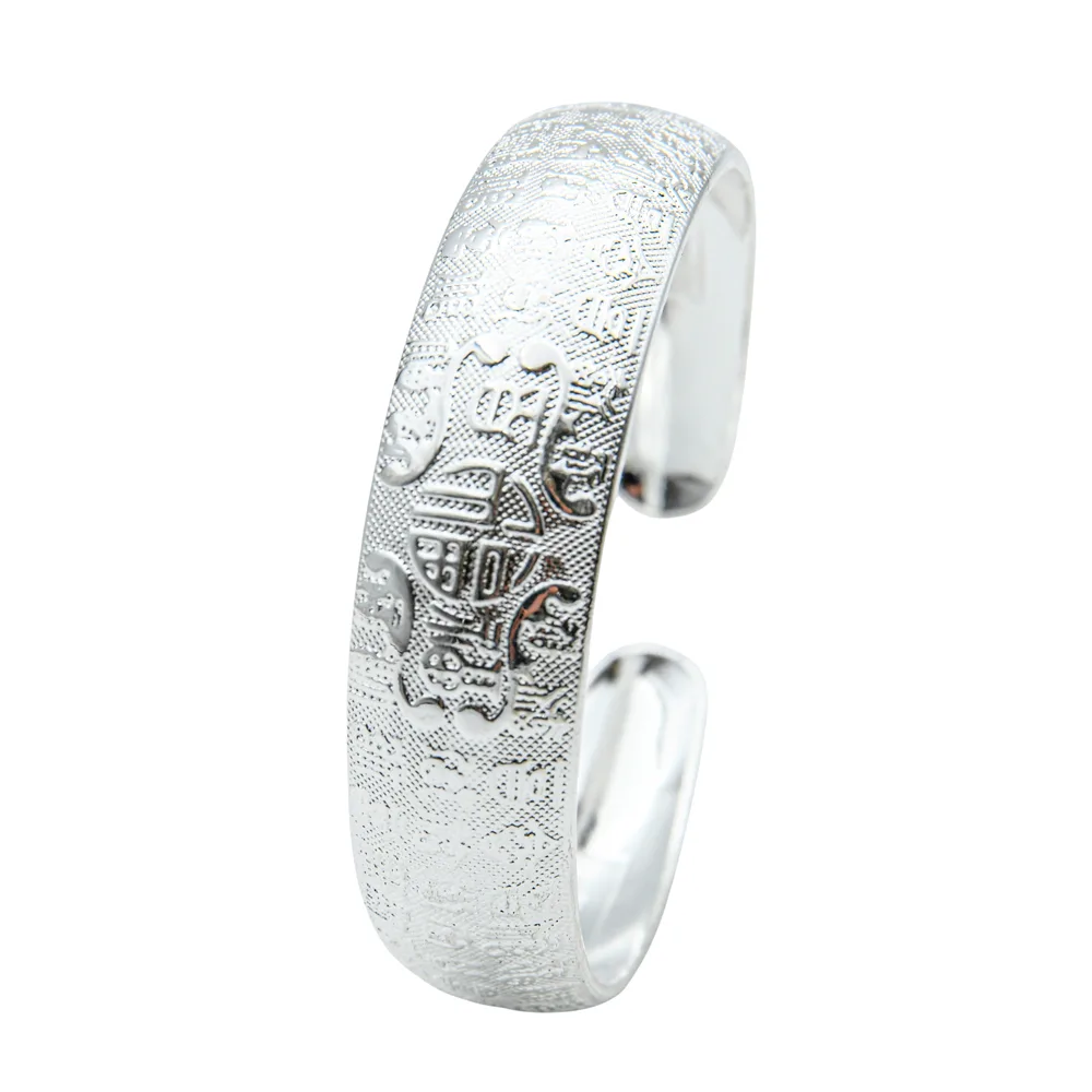 Deze dames armband is niet alleen een stijlvol accessoire, maar draagt ook een diepere betekenis met zich mee. De Tibetaanse mantra’s aan de buitenkant zijn zorgvuldig gekozen om positieve energie en balans te brengen. De gravures van lampionnen aan de binnenkant voegen een extra element van mystiek toe, waardoor deze bangle echt uniek is.