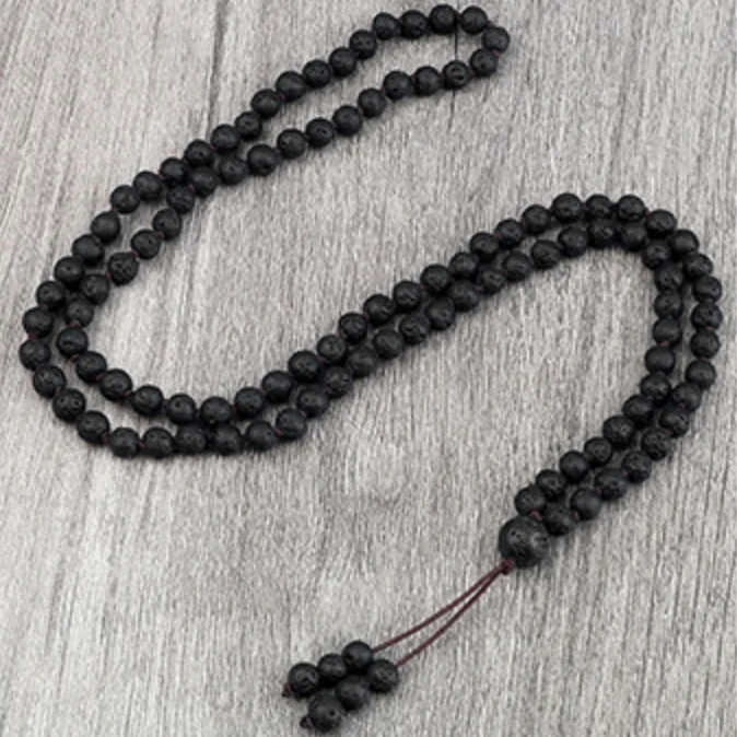 - kralen vervaardigd uit zwart lavasteen