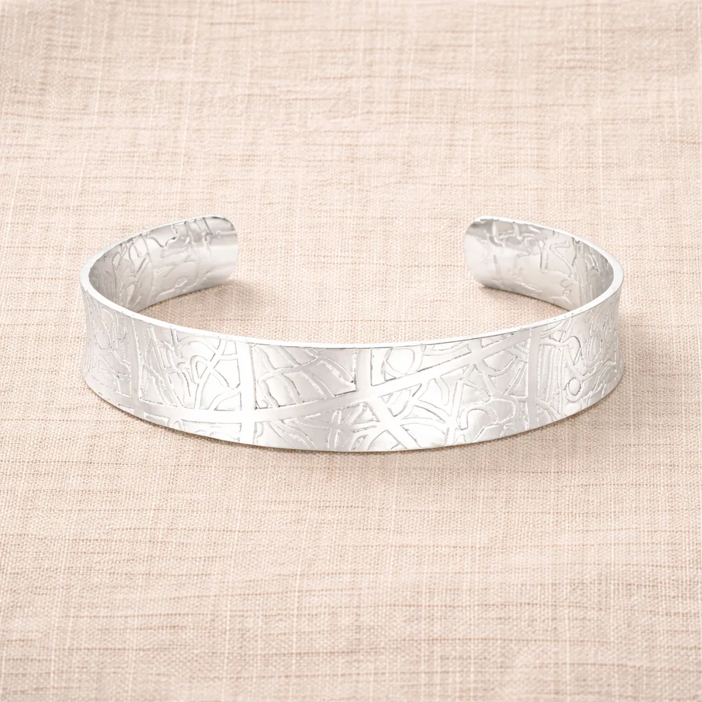 De Rebel Cuff Armband is een krachtige combinatie van vrouwelijkheid en stoer design. Deze open zilveren damesarmband met subtiel gegraveerd patroon geeft elke outfit een opvallende en luxe uitstraling. Perfect voor dagelijks gebruik én speciale gelegenheden.