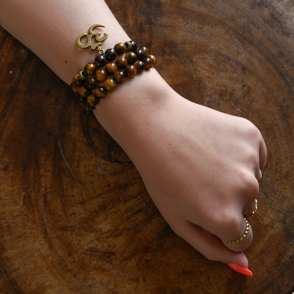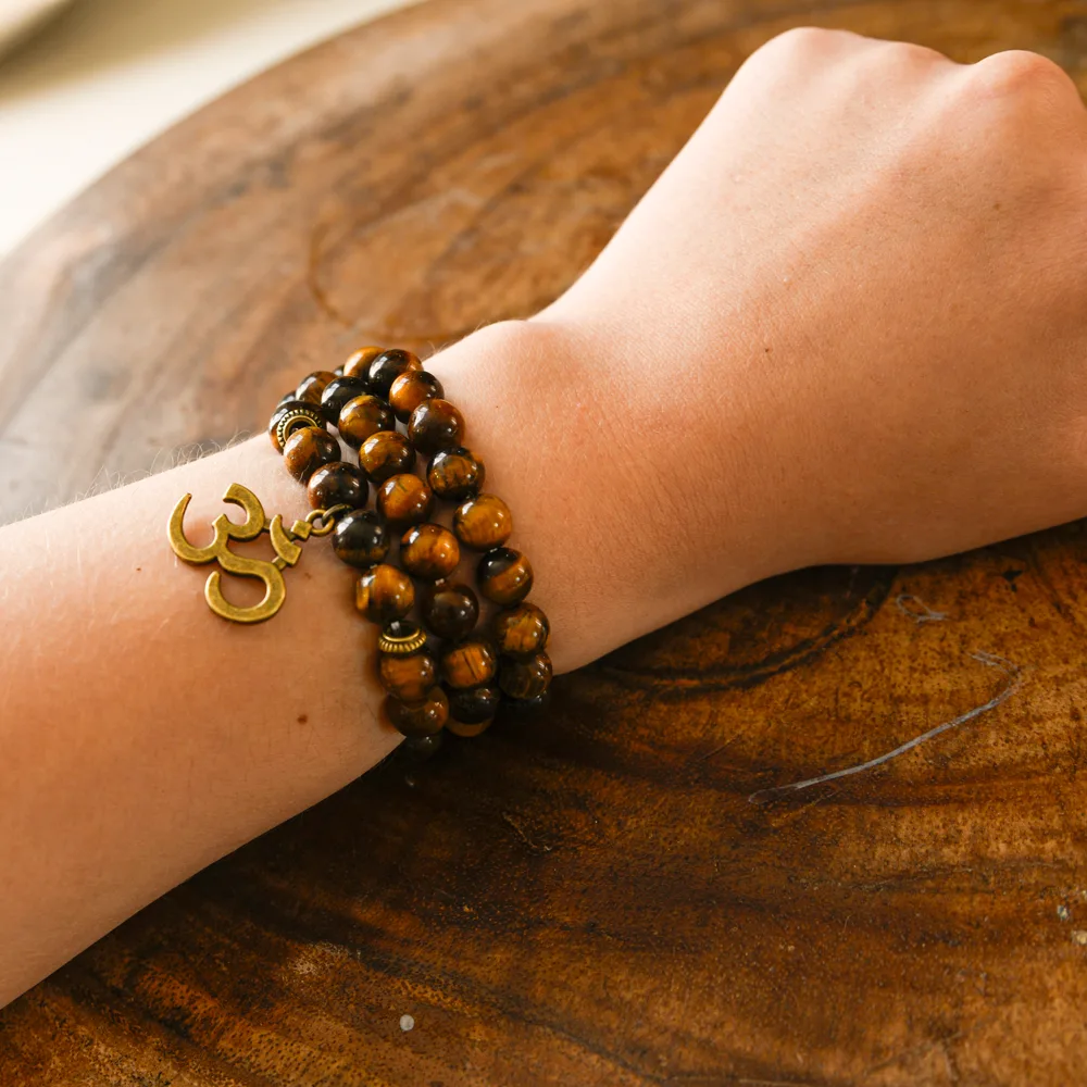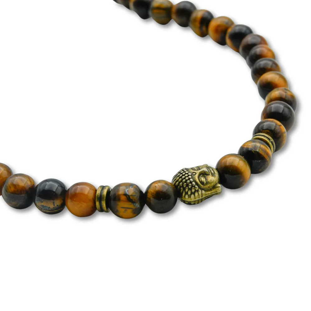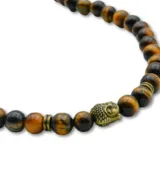 De tijgeroog edelstenen zijn niet alleen visueel aantrekkelijk, maar ze worden ook gewaardeerd om hun beschermende eigenschappen. Deze edelsteen wordt vaak geassocieerd met moed en zelfvertrouwen. De armband is verder verrijkt met een bronzen Ohm-teken en Buddha-kraal, die beide spirituele rust en balans symboliseren. Dit maakt de armband niet alleen een modeaccessoire, maar ook een bron van innerlijke kracht en sereniteit.