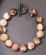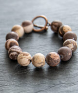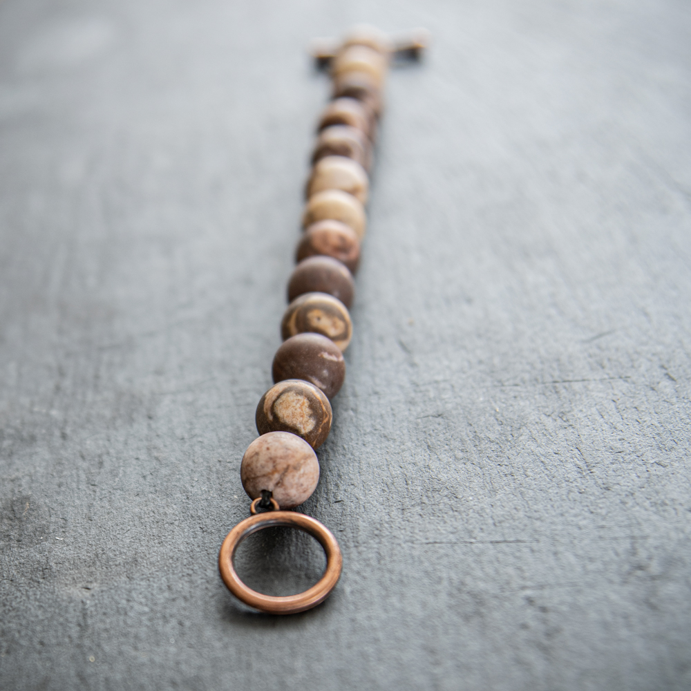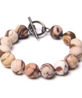 Deze prachtige vegan armband is handgemaakt en voorzien van verschillende ronde kralen vervaardigd uit half-edelstenen zoals Autralian Zebra Stone. De matte kralen zijn geregen op een stevig koord. Een trendy aanvulling op je outfit! Een natuurlijke uitstraling met een subtiel effect.
