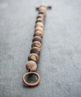 Deze trendy armband is voorzien van een bronskleurige ringsluiting.