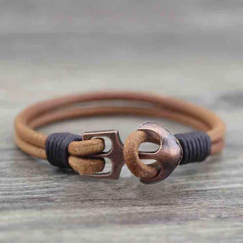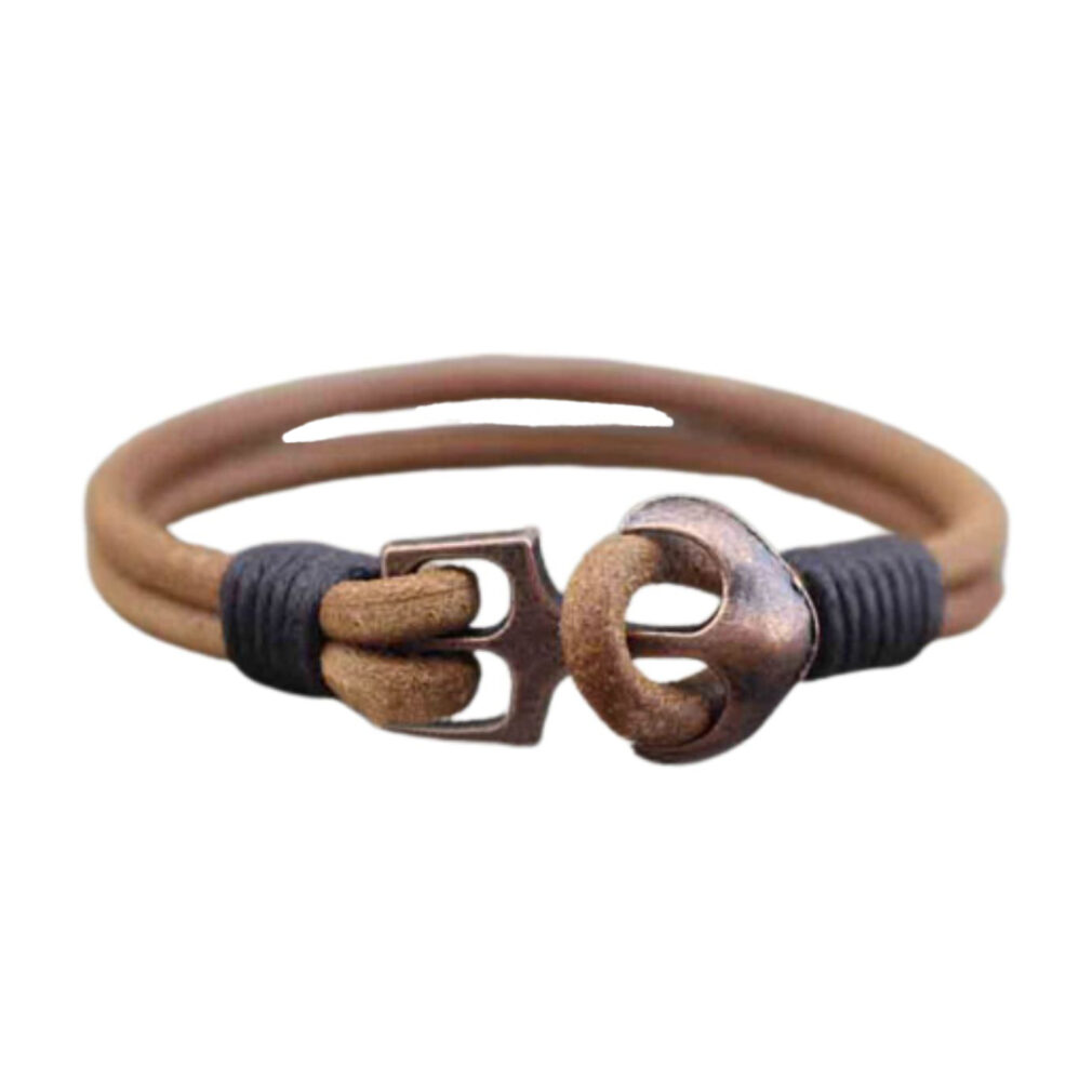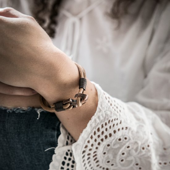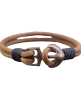 Deze mooie wikkelarmband handgemaakt van camelkleurig leer heeft een bronskleurige haaksluiting. Een elegant design geschikt voor mannen en vrouwen. De totale lengte van de armband is 21 cm. Draag de armband met meerdere armbanden uit deze serie voor een mooi effect, of draag hem subtiel als enkele armband.