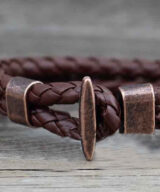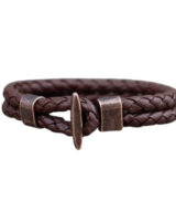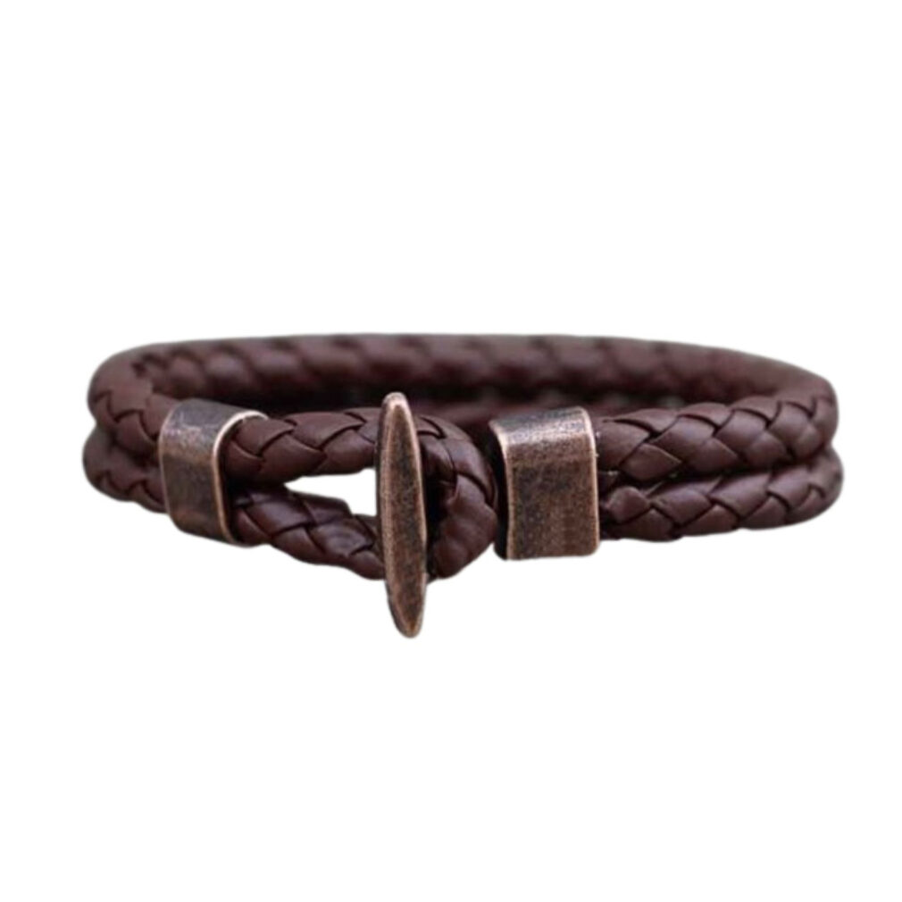 Deze prachtige handgemaakte armband is vervaardigd van geweven leer en bronskleurig metaal. De natuurlijke bruine kleur zorgt ervoor dat de armband past bij enorm veel outfits. Door de knoopsluiting is de armband gemakkelijk en comfortabel in gebruik. Deze handgemaakte armbanden zijn stuk voor stuk uniek!