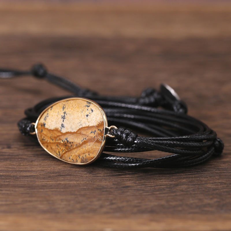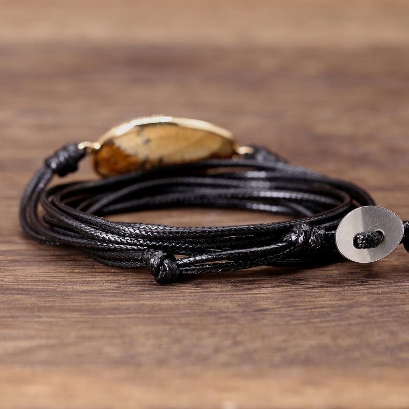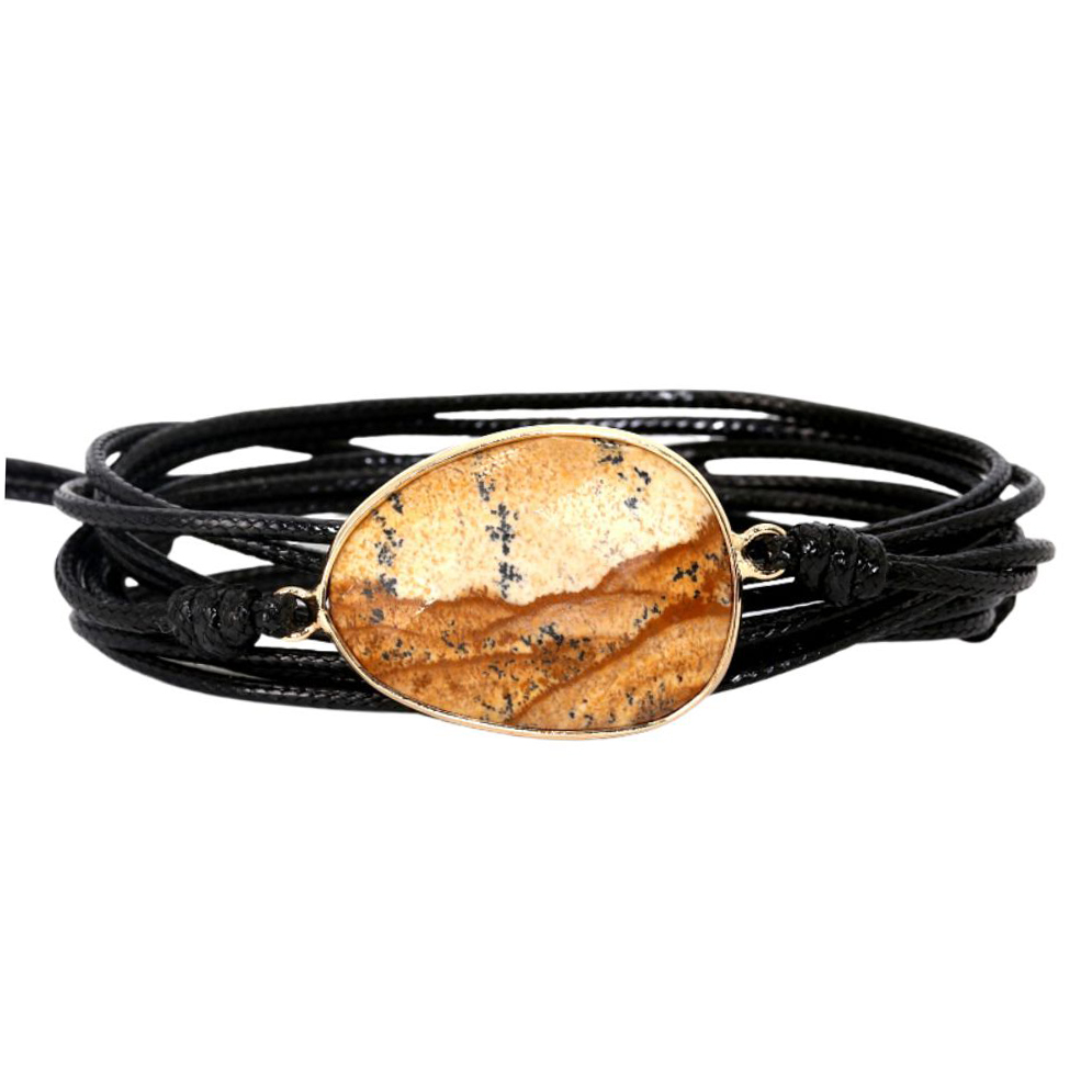 Armband Edelsteen Aragoniet Zwart Waxcord