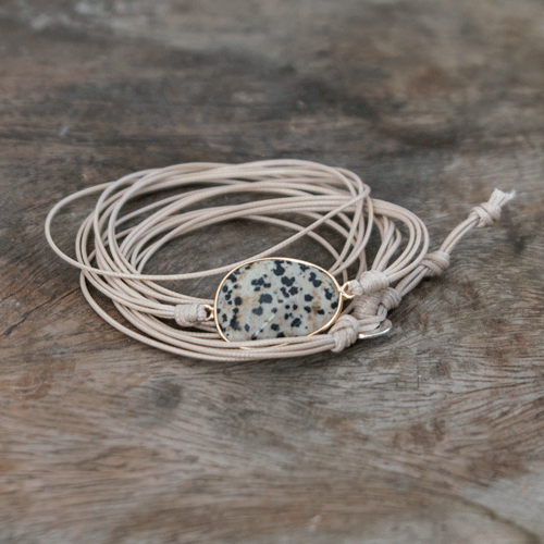 Armband Edelsteen Dalmatiër Jaspis Lichtbruin Waxcord