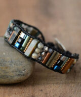 De armband is naast edelstenen voorzien van verschillende kralen. Door zijn prachtige donkeren kleuren perfect te dragen voor iedere dames of heren pols.