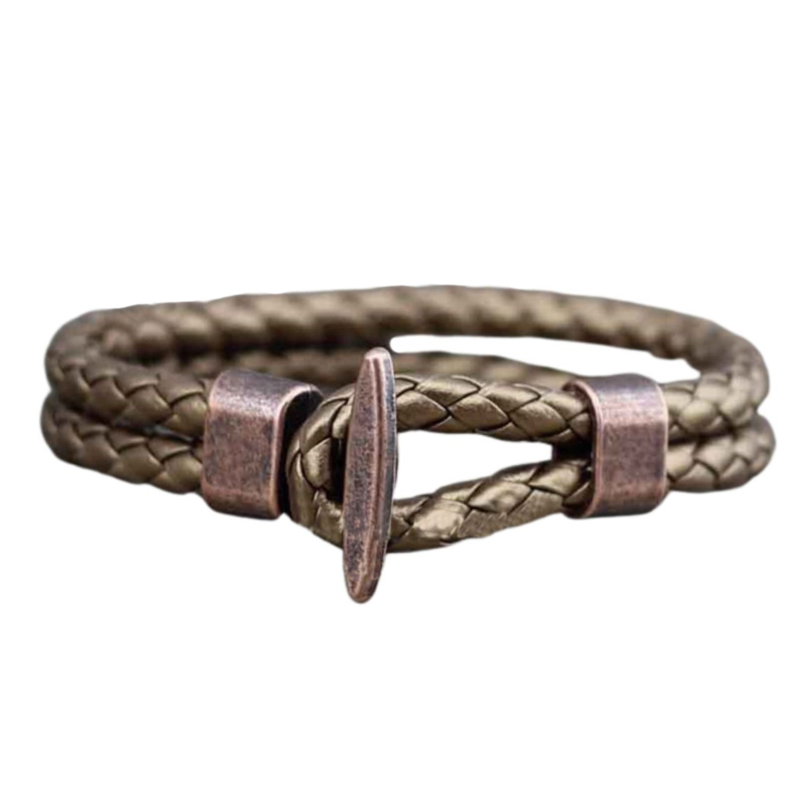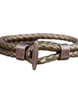 Deze prachtige handgemaakte armband is vervaardigd van geweven leer en bronskleurig metaal. Vanwege het tijdloze design past hij perfect bij iedere dames of heren outfit! Door zijn knoopsluiting is hij gemakkelijk en comfortabel in gebruik. Deze handgemaakte armbanden zijn stuk voor stuk uniek! Steel de show met deze prachtige armband om je pols.