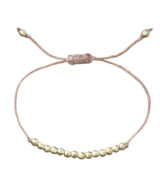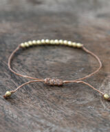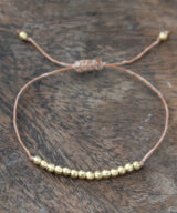 Deze prachtige handgemaakte armband is vervaardigd van vegan waxcord en goudkleurige zinklegering kralen. Elegant en minimalistisch design die perfect gedragen kan worden door dames en heren. Door zijn sluiting is hij gemakkelijk en comfortabel in gebruik. De handgemaakte armbanden zijn vanwege de hypoallergene eigenschappen ideaal voor mensen met een gevoelige huid en wie last heeft van metaalallergie. Deze handgemaakte armbanden zijn stuk voor stuk uniek!