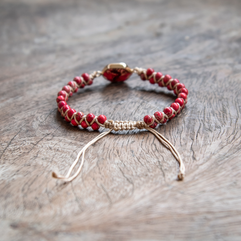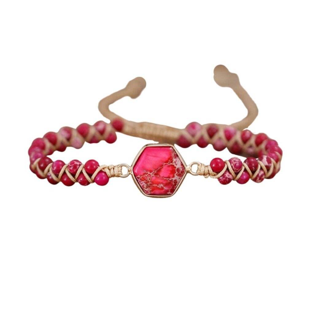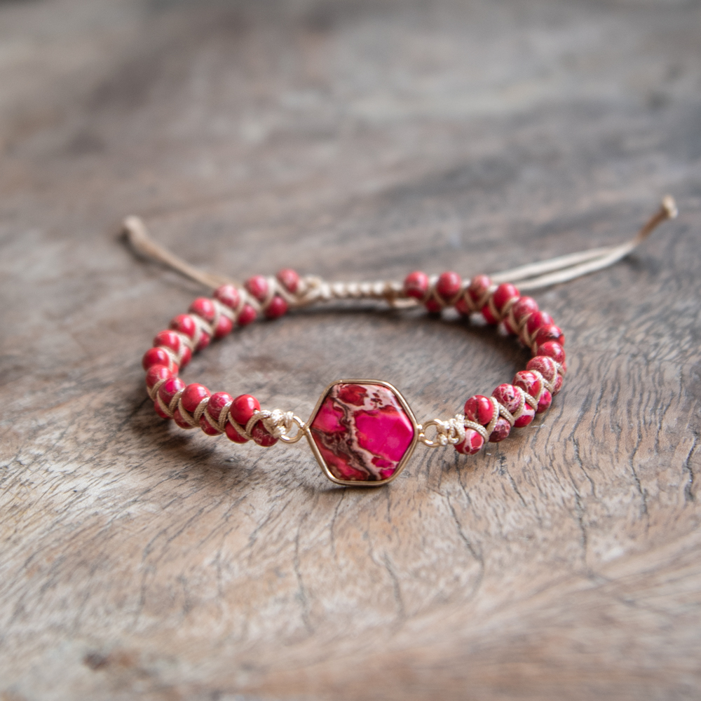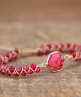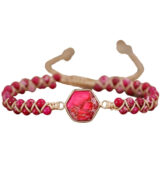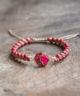 Deze schitterende vegan armband is handgemaakt van bruin vegan waxcord en edelstenen. De armband is vervaadigd van Jaspis edelstenen in de kleur roze. Een trendy armband met een vrouwelijke touch! Perfect te dragen door dames.Het lichtbruine waxcord heeft een verstelbare sluiting, is het one size fits all!