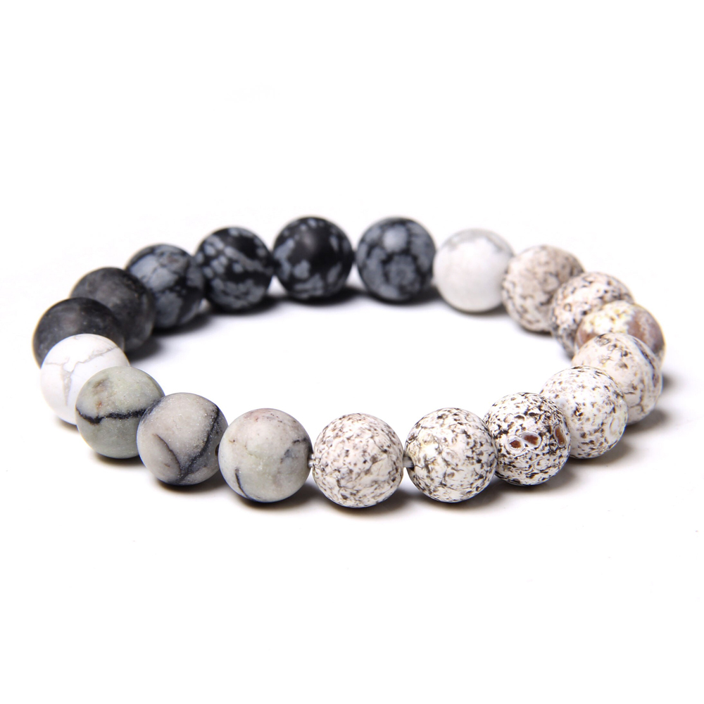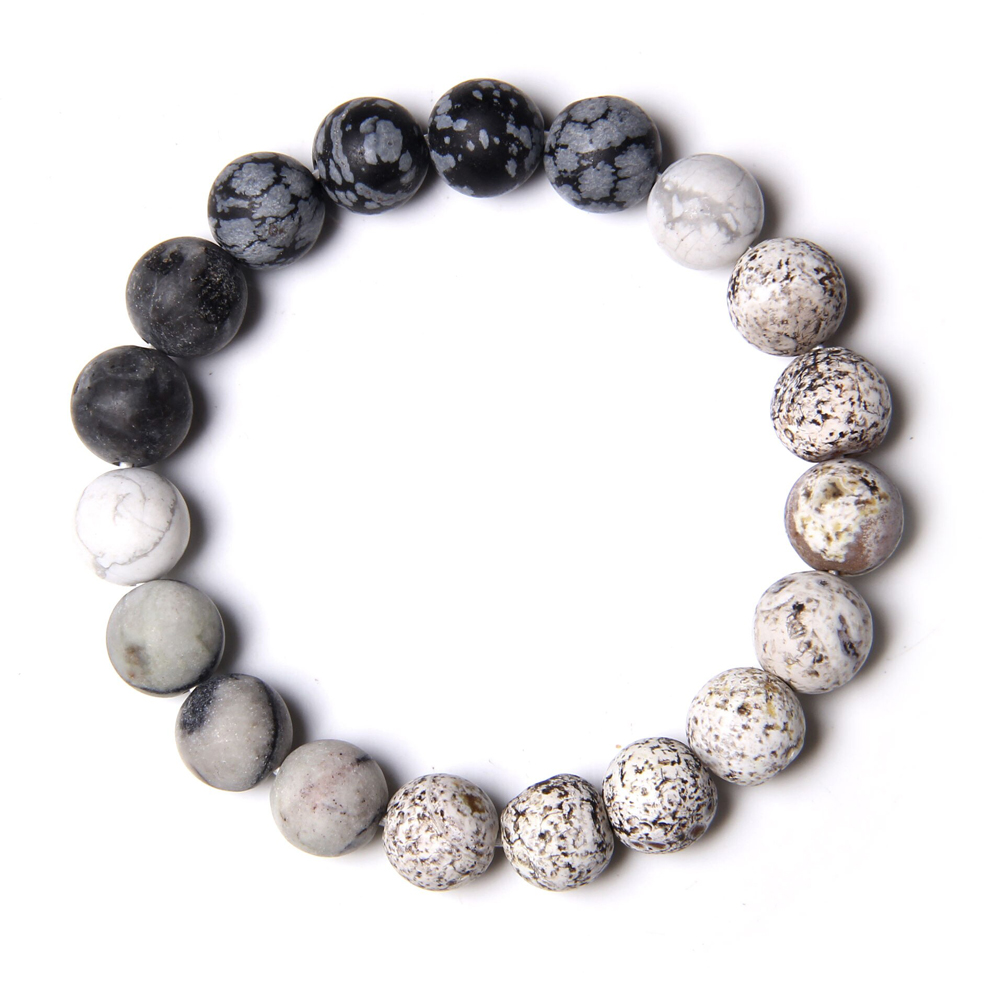 Deze prachtige vegan armband is handgemaakt en voorzien van verschillende ronde kralen vervaardigd uit half-edelstenen zoals jade, sodaliet en howliet. De matte kralen zijn geregen op een stevig elastiek. Een trendy aanvulling op je outfit! Een natuurlijke uitstraling met een subtiel effect.