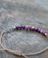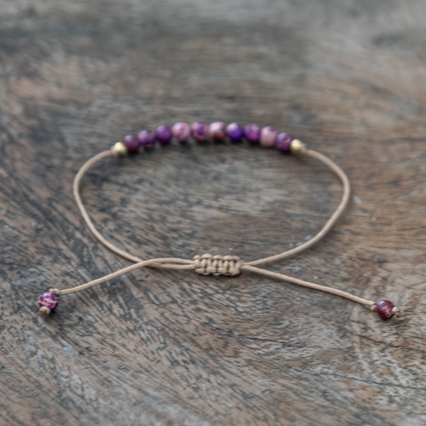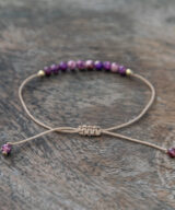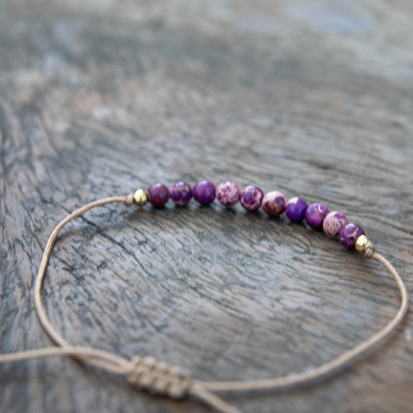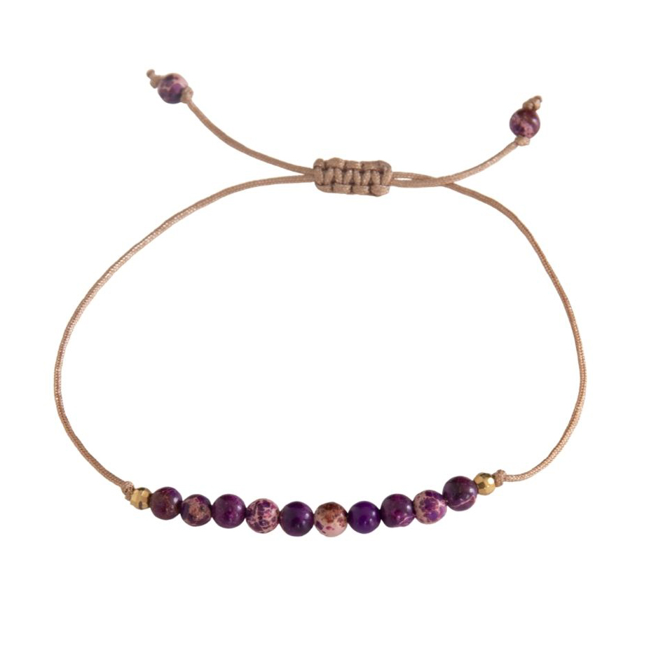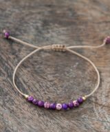 Deze minimalistische armband is gemaakt van vegan waxcord met een verstelbare sluiting, dus one size fits all! De armband beschikt over 10 gemarmerde paarse kralen van 4 mm. Een elegante toevoeging aan jouw outfit. Leuk voor dames en heren. Wordt geleverd in een luxe geschenkdoos.