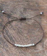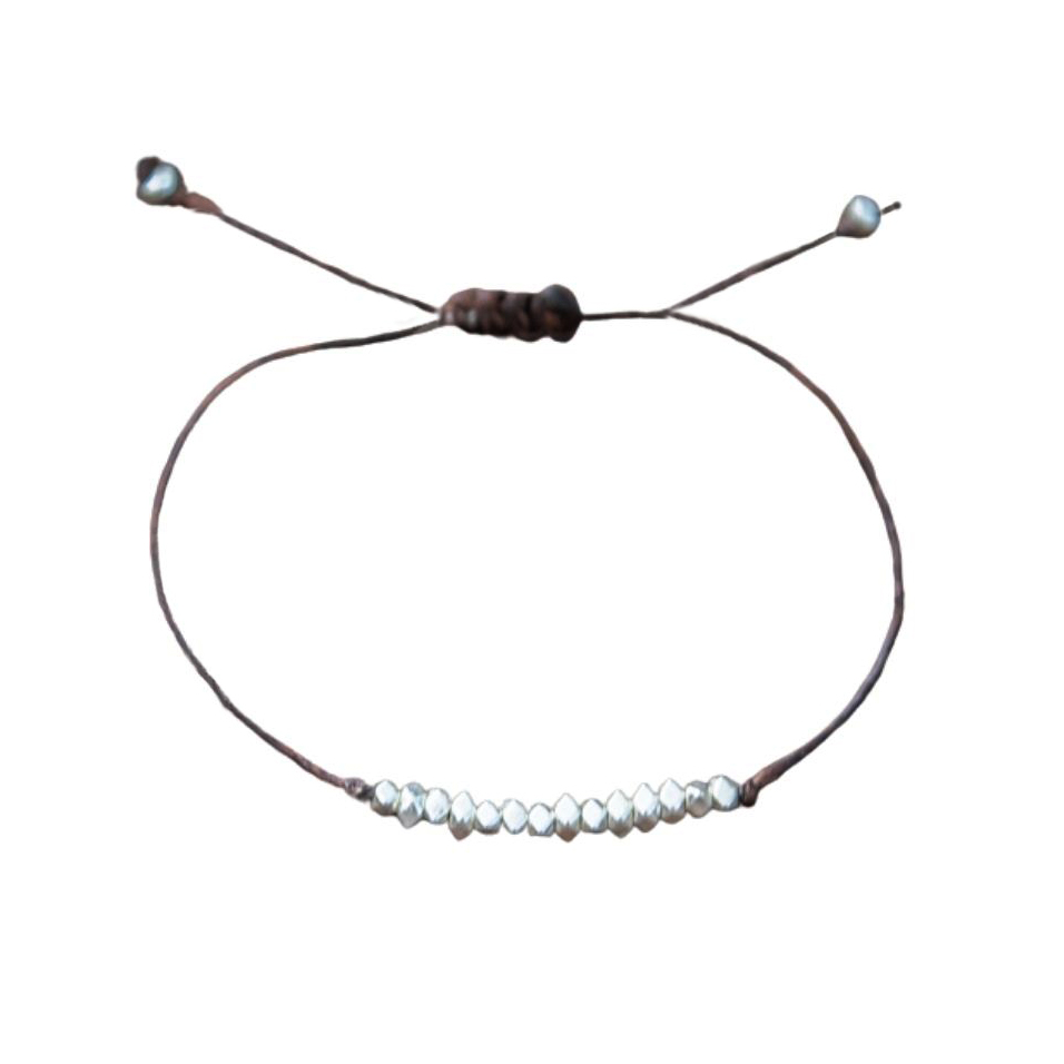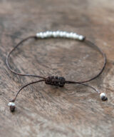 Deze prachtige handgemaakte armband is vervaardigd van vegan waxcord en zilverkleurige zinklegering kralen. Een klein cadeau perfect voor dames en heren. Door zijn sluiting is hij gemakkelijk en comfortabel in gebruik. De handgemaakte armbanden zijn vanwege de hypoallergene eigenschappen ideaal voor mensen met een gevoelige huid en wie last heeft van metaalallergie. Deze handgemaakte armbanden zijn stuk voor stuk uniek!