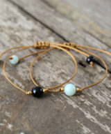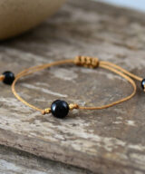 Deze minimalistische armband waxcord Black Stone is vervaardigd van bruin vegan waxcord met een verstelbare sluiting, dus 1 size fits all! De armband beschikt over 1 grote zwarte kraal van natuursteen, goudkleurige kraaltjes en aan de uiteinden 2 kleine zwarte kralen van natuursteen. Een stijlvol design dat gedragen kan worden door dames en heren. Deze vegan armband wordt geleverd in een luxe geschenkverpakking.