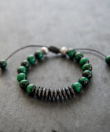 Deze stoere handgemaakte armband van zwart waxcord en groene Tijgeroog edelstenen heeft een een verstelbare knoopsluiting. De vegan armband is geschikt voor mannen en vrouwen. Draag de armband met meerdere armbanden uit deze serie voor een mooi effect, of draag hem subtiel als enkele armband om je pols. Leuk om cadeau te geven. Wordt geleverd in een luxe geschenkverpakking