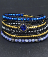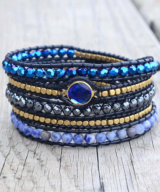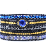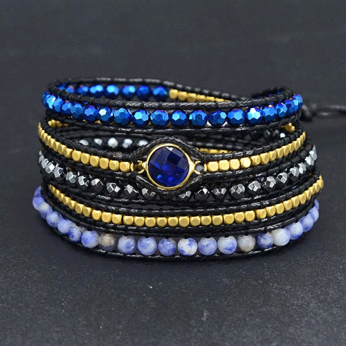 Luxe Handgemaakte Wikkelarmband met Blauwe Edelsteen Kristal – Bohemian Chic – Verstelbaar – Premium Kwaliteit