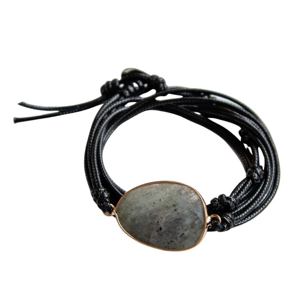 Wikkel Armband Edelsteen Labradoriet Zwart Waxcord