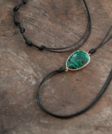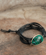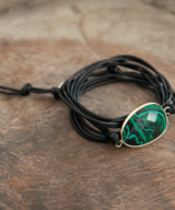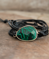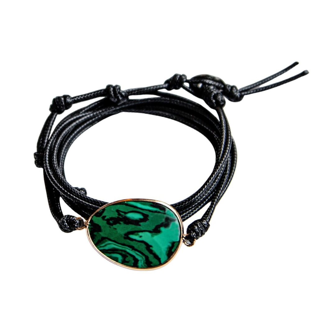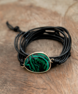Wikkel Armband Edelsteen Malachiet Zwart Waxcord