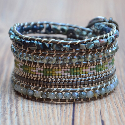 Deze trendy wikkelarmband past perfect bij iedere zomer outfit! Deze Ibiza style armband is gemaakt van kleine kralen, edelstenen zoals labradoriet en kristal, en leer. De armband is enorm leuk om te geven of een mooi cadeautje voor jezelf!