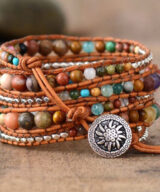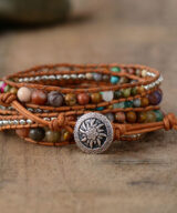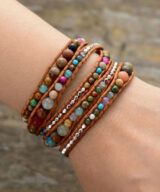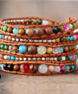 Deze schitterende armband is handgemaakt van bruin leer en edelstenen. De armband past 5x om je pols. Door de lengte ook te dragen als een ketting voor zowel dames.