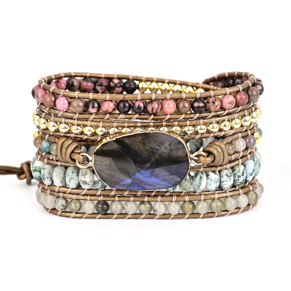 - Armband van hoogwaardig leer en edelsteen labradoriet.
