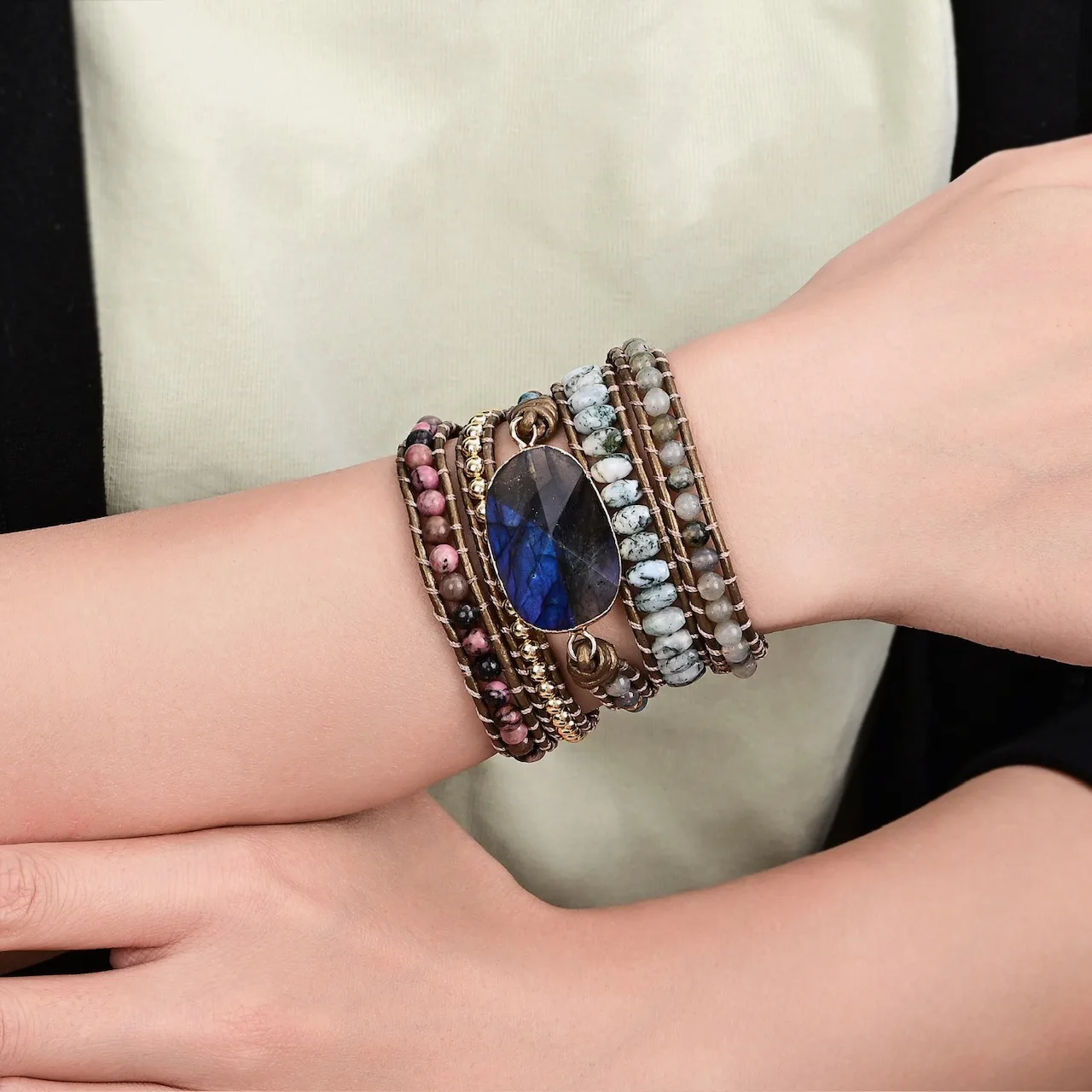 - Prachtige wikkelarmband die 5x om de pols gaat.
