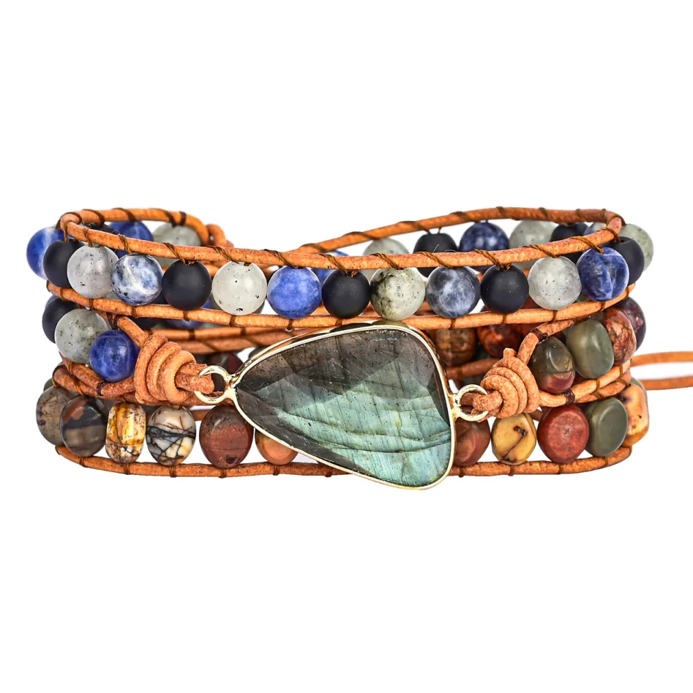 De prachtige Marama Wikkelarmband Pacific is speciaal ontworpen voor dames die houden van een natuurlijke uitstraling. Deze charmante wikkelarmband is gemaakt van lichtbruin leer en is voorzien van een schitterende hoofd edelsteen labradoriet. Daarnaast zijn er ook kleine edelstenen zoals agaat en jaspis verwerkt, wat zorgt voor een speels en kleurrijk effect.