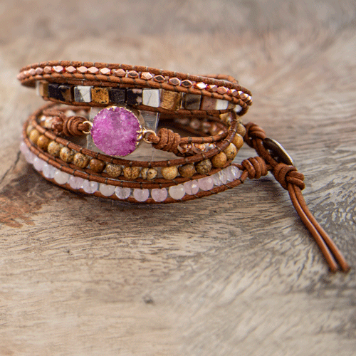 Bij ons vindt je prachtige wikkelarmbanden van verschillende edelstenen zoals jaspis, rozenkwarts en tijgeroog. Deze armbanden beschikken over een verstelbare sluiting dus one size fits all! Elk sieraad is uniek en beschikt over mooie kleurencombinaties. De stoere herenarmbanden worden veelal vervaardigd van leer, maar ook van duurzaam metaal.