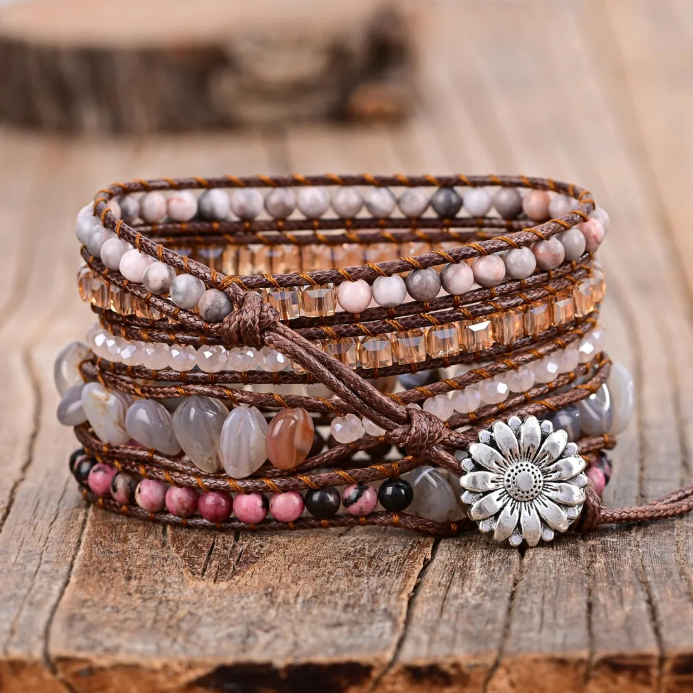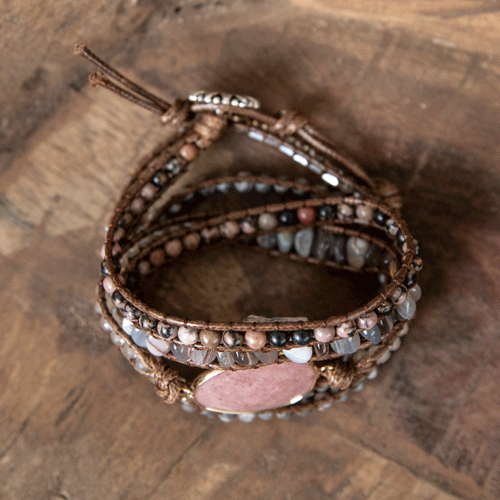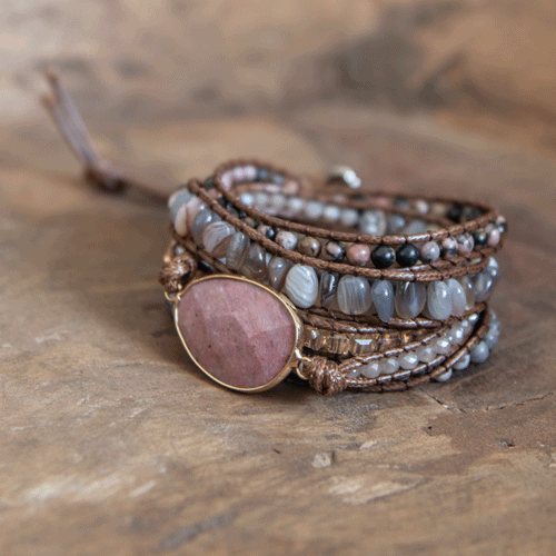 Of je nu naar een formele gelegenheid gaat of gewoon je dagelijkse look wilt verfraaien, de wikkelarmband Rose is de perfecte keuze. De combinatie van roze edelstenen en bruin leer zorgt ervoor dat het zowel casual als chic gedragen kan worden. Voeg dit veelzijdige sieraad toe aan je collectie en straal elke dag opnieuw.