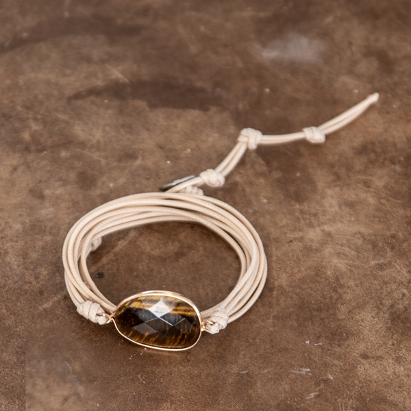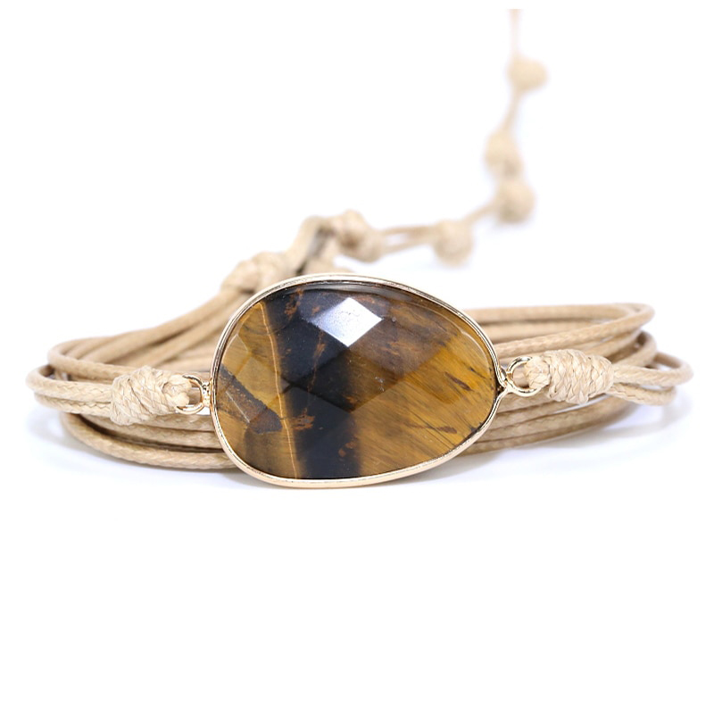Wikkel Armband Tijgeroog Lichtbruin Waxcord