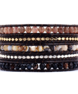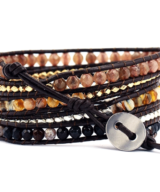 Deze trendy wikkelarmband past perfect bij iedere zomer outfit! Deze Ibiza style armband is gemaakt van kleine kralen, edelstenen zoals labradoriet en onyx, en leer. De armband is enorm leuk om te geven of een mooi cadeautje voor jezelf!