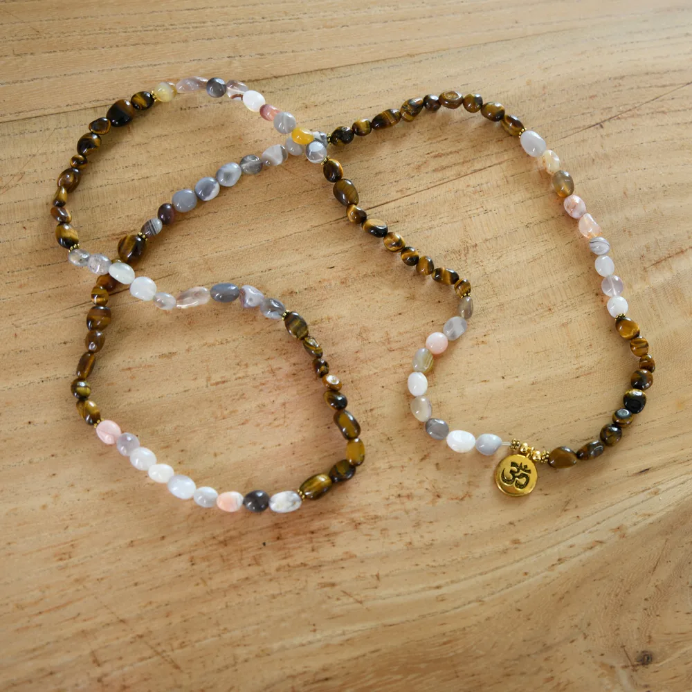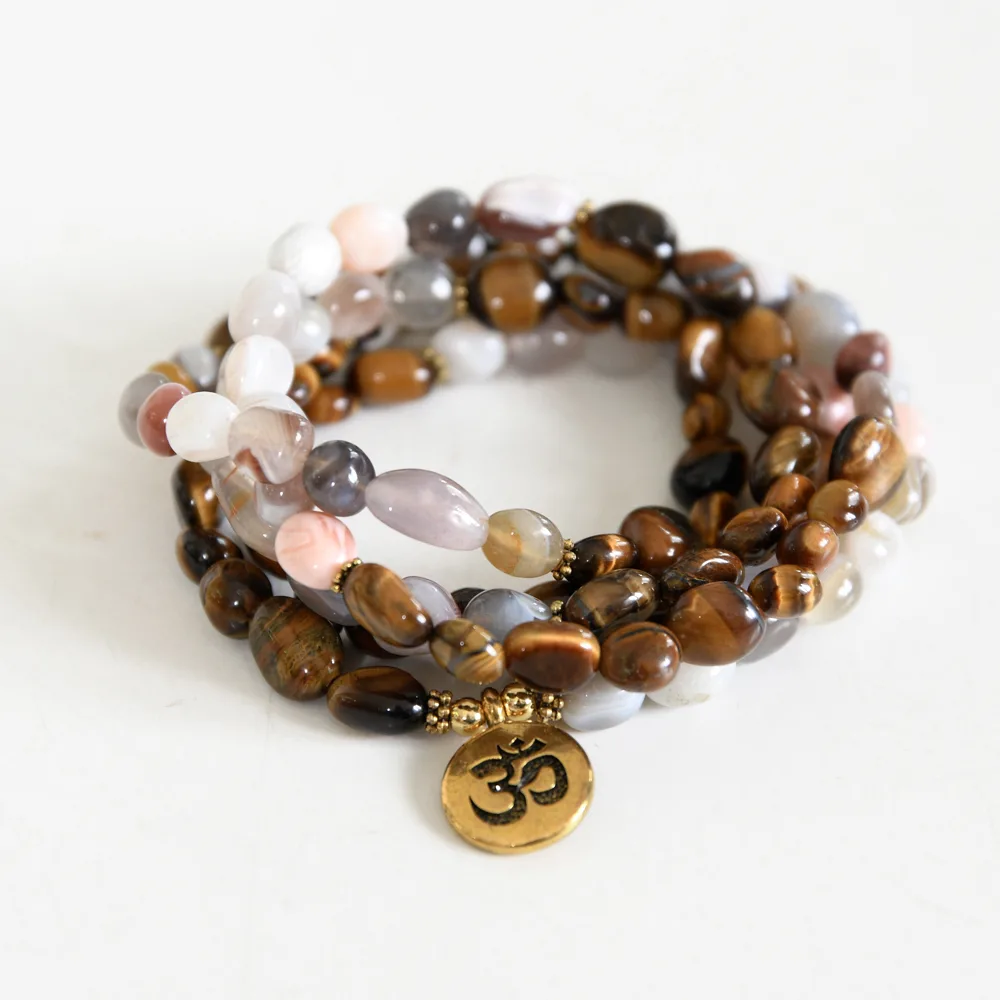 De Mala armband heeft 108 kralen gemaakt van natuurlijke Agaat edelstenen en kan ook als ketting worden gedragen. Geleverd in een luxe geschenkdoos.
