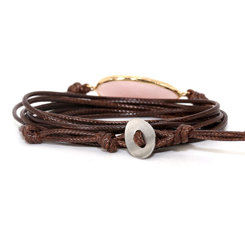 Wikkelarmband Edelsteen Rozenkwarts Donkerbruin Waxcord