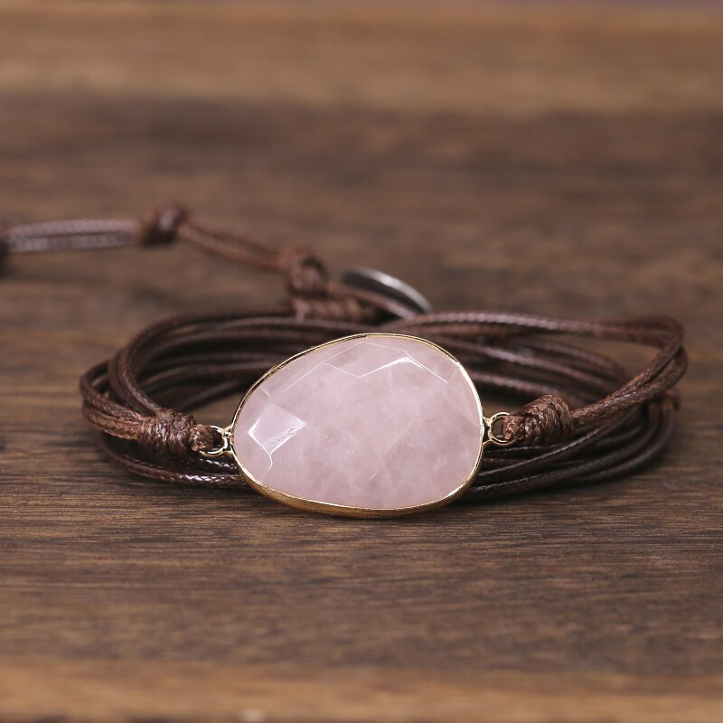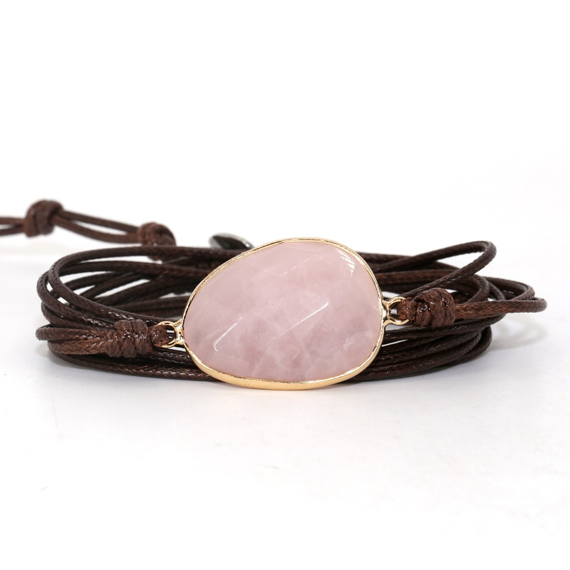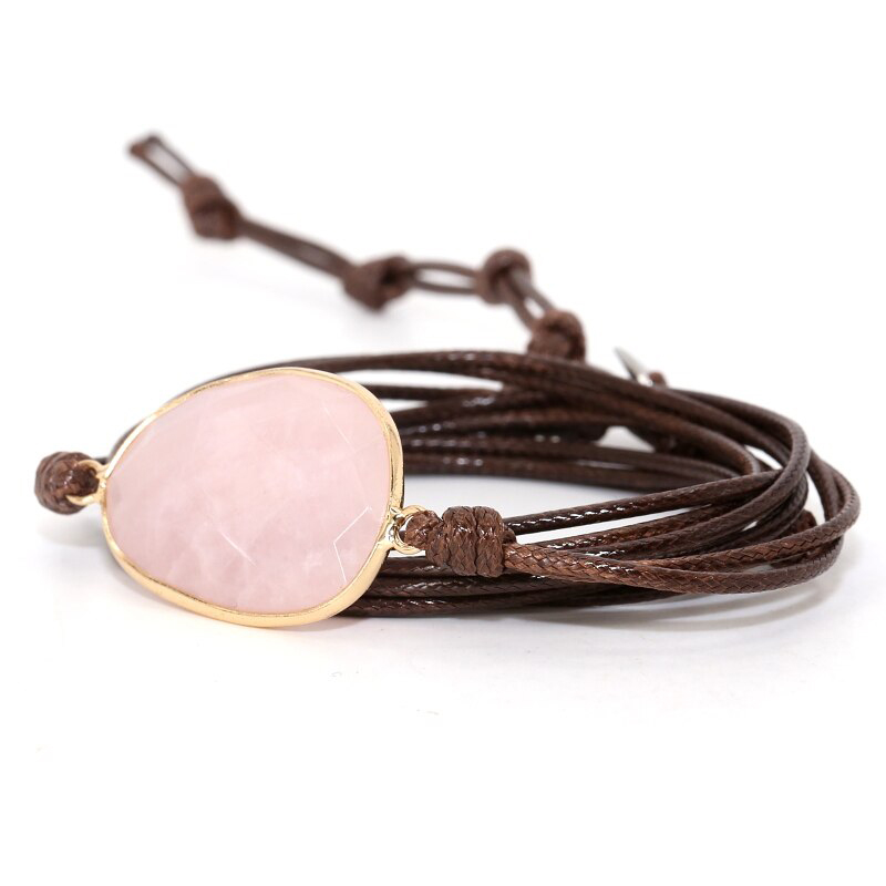 Deze trendy bruine vegan armband is voorzien van de roze edelsteen Rozenkwarts. Door zijn zachte uitstraling is dit de perfecte dames armband.