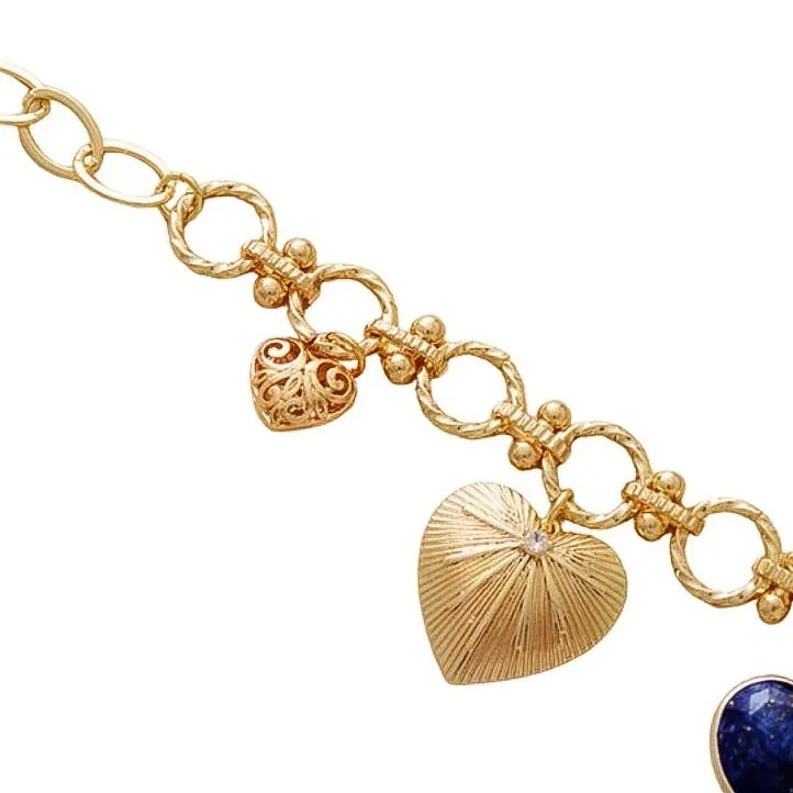 Laat liefde en elegantie samensmelten met onze Bedelarmband Heart. Met vijf verschillende soorten hartjes, waarvan één van de edelsteen lapis lazuli is gemaakt, elk met hun eigen unieke charme, is deze armband een eerbetoon aan de diversiteit van liefde en emotie.