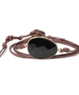 Wikkel Armband Edelsteen Zwarte Agaat Bruin Waxcord
