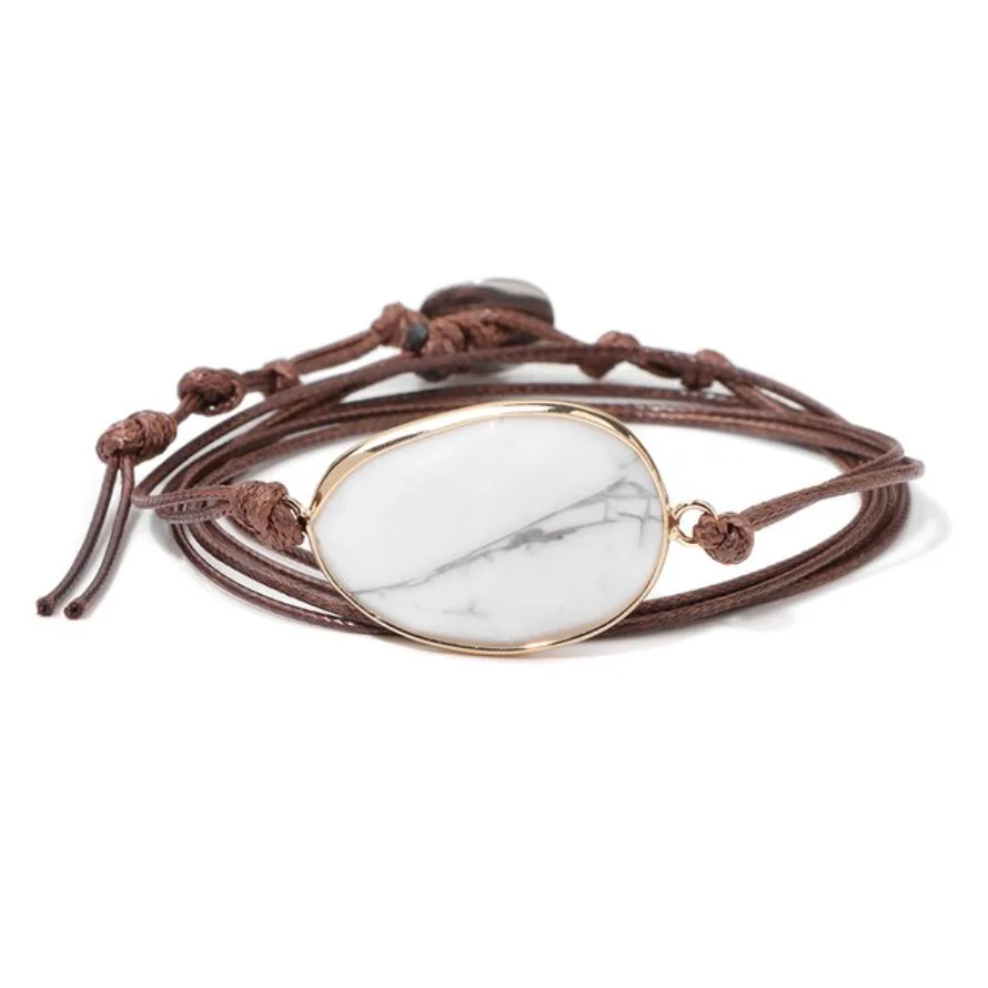 Wikkel Armband Edelsteen Howliet Bruin Waxcord