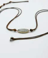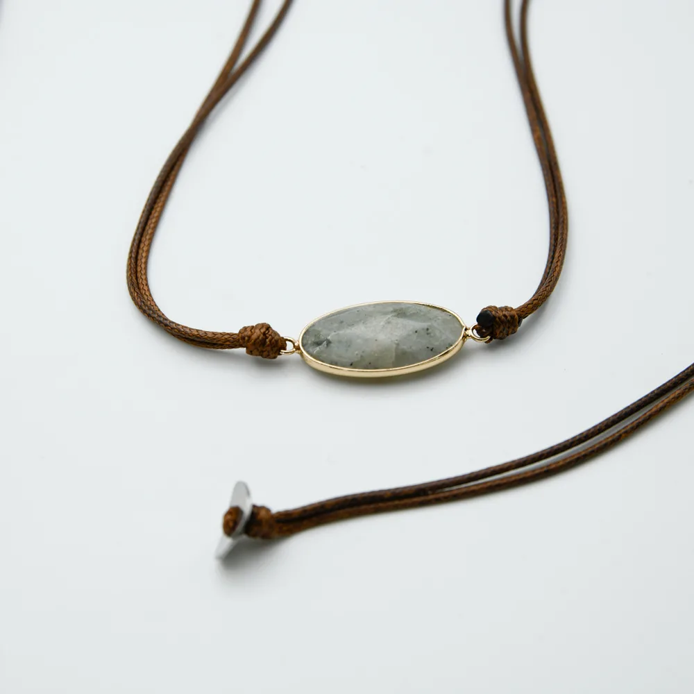 Wikkel Armband Edelsteen Labradoriet Ovaal Bruin Waxcord