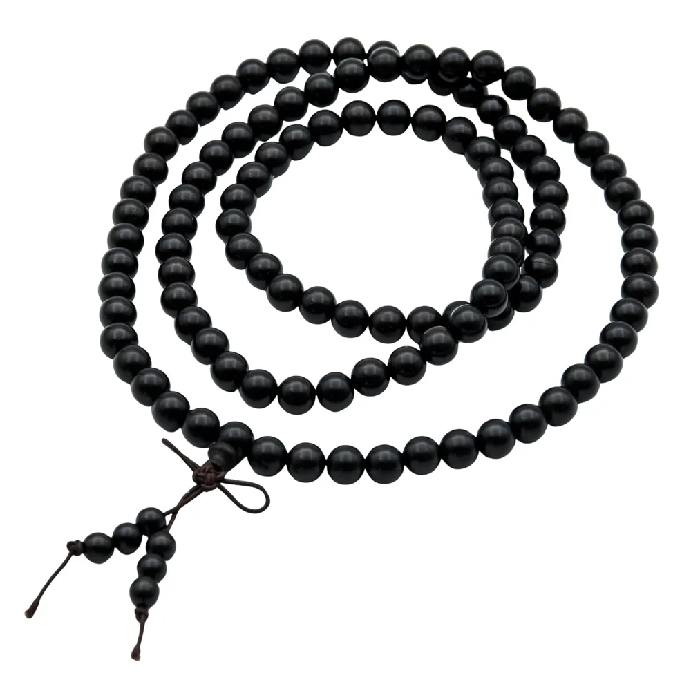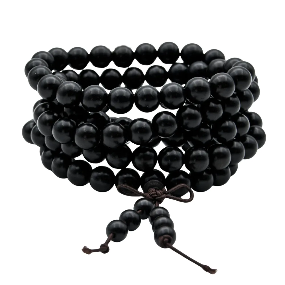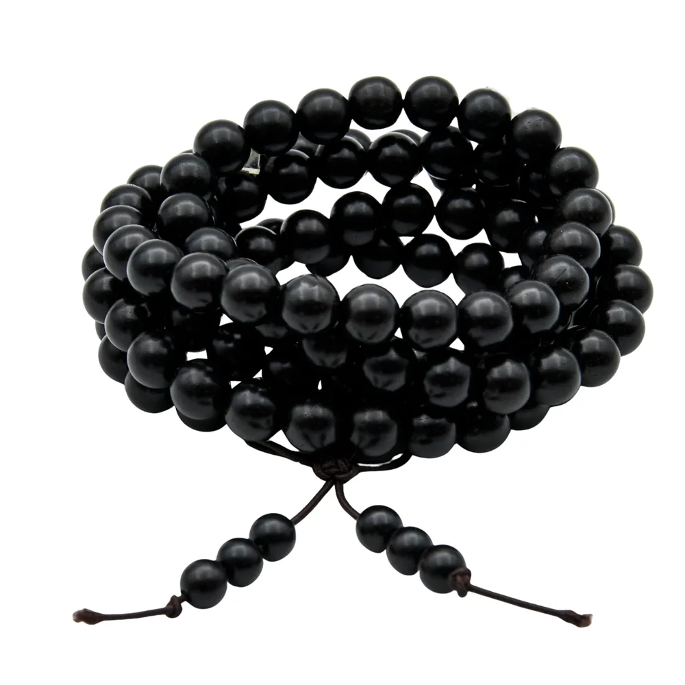 Wikkel Armband Mala Sandelhout Zwart Kralen 8 mm