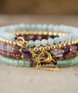 Op zoek naar een stijlvolle en veelzijdige armband? Dan is deze wikkel armband Morning Rain echt iets voor jou! Deze damesarmband is niet alleen prachtig, maar ook verstelbaar, vegan en gemaakt van hoogwaardige edelstenen zoals amethist, kristal en amazoniet. Of je nu een bohemian look wilt creëren of gewoon op zoek bent naar een uniek sieraad, deze wikkelarmband past perfect bij elke gelegenheid. De armband is verstelbaar en voorzien van een slotje in de vorm van een hart. Je kunt de armband als wikkelarmband en als ketting dragen, je zult zeker de show stelen met de Morning Rain om je pols of hals!