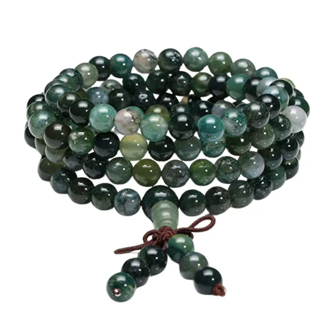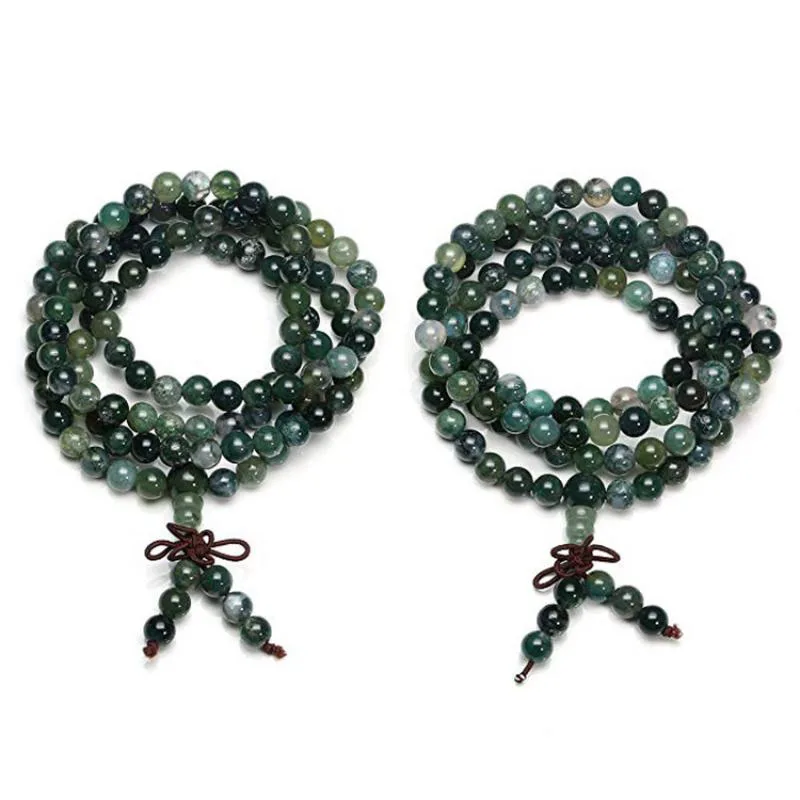 Ben je op zoek naar een stijlvolle en veelzijdige armband die zowel als ketting gedragen kan worden? Ontdek deze prachtige groene Agaat Mala armband, gemaakt van edelsteen Agaat met 108 kralen van 6 mm. Deze elastische armband is perfect voor zowel dames als heren en straalt een natuurlijke schoonheid uit.