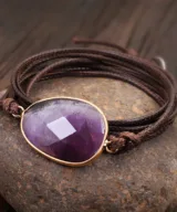 De Marama Armband Amethist Donkerbruin Leer is een prachtige toevoeging aan je sieradencollectie. Deze stijlvolle damesarmband combineert de natuurlijke schoonheid van edelsteen amethist die zorgt voor innerlijke rust met de warme tinten van donkerbruin leer. Het ontwerp is speciaal gemaakt om meerdere keren om je pols te wikkelen, waardoor het een veelzijdig en opvallend accessoire is.