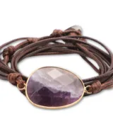 Wikkelarmband Amethist Donkerbruin Leer