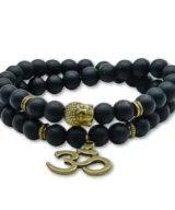 De matte Onyx edelstenen zijn niet alleen visueel aantrekkelijk, maar ze worden ook gewaardeerd om hun ondersteuning bij concentratie en geheugen. Deze edelsteen wordt vaak geassocieerd met realistisch denken. De armband is verder verrijkt met een bronzen Ohm-teken en Buddha-kraal, die beide spirituele rust en balans symboliseren. Dit maakt de armband niet alleen een modeaccessoire, maar ook een bron van innerlijke kracht en sereniteit.