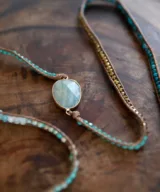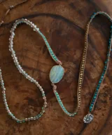 - Kleine edelstenen: amazone, jaspis en stainless steel goud.