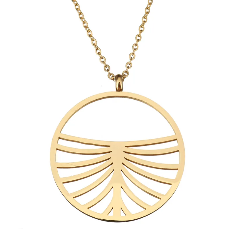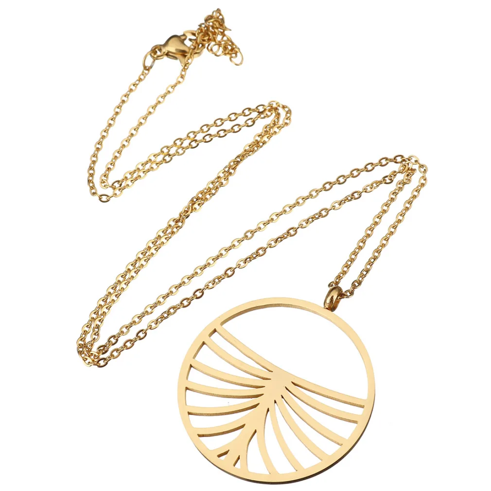 Ontdek de stralende pracht van onze Sunbeam Gold damesketting, een schitterend sieraad met een ronde hanger, voorzien van zonnestralen. Deze verfijnde damesketting is vervaardigd van hoogwaardig roestvrij staal (RVS) en subtiel verguld met een goudkleurige plating, waardoor het niet alleen een tijdloze elegantie heeft, maar ook duurzaamheid biedt voor dagelijks gebruik.