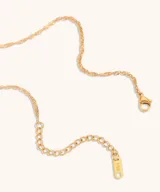 De ketting gemaakt van hoogwaardig stainless steel, 18k gold plated, voorzien van een strass steentje, combineert duurzaamheid met een tijdloze uitstraling.
