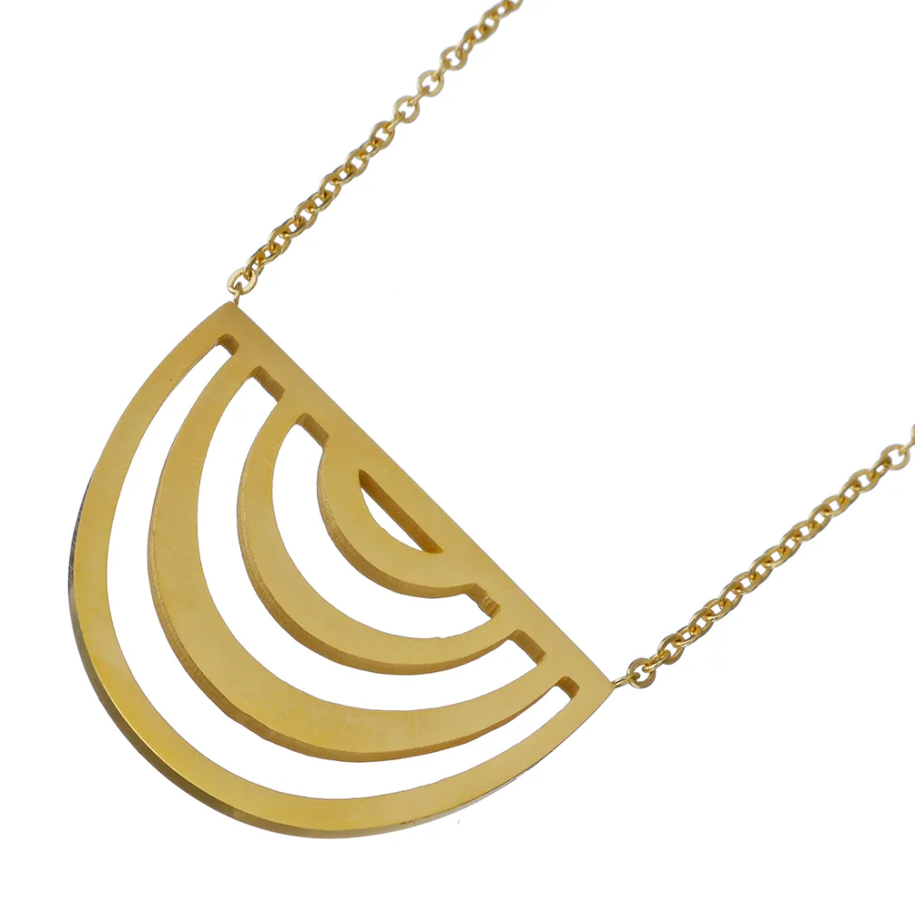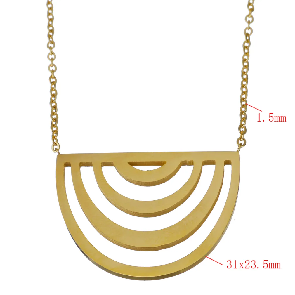 Ontdek de stralende pracht van Ketting Waves Goud , een schitterend sieraad met een half ronde hanger voorzien van bogen. Deze verfijnde damesketting is vervaardigd van hoogwaardig roestvrij staal (RVS) en subtiel voorzien met een goudkleurige plating, waardoor het niet alleen een tijdloze elegantie heeft, maar ook duurzaamheid biedt voor dagelijks gebruik.
